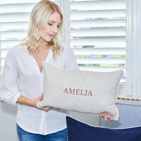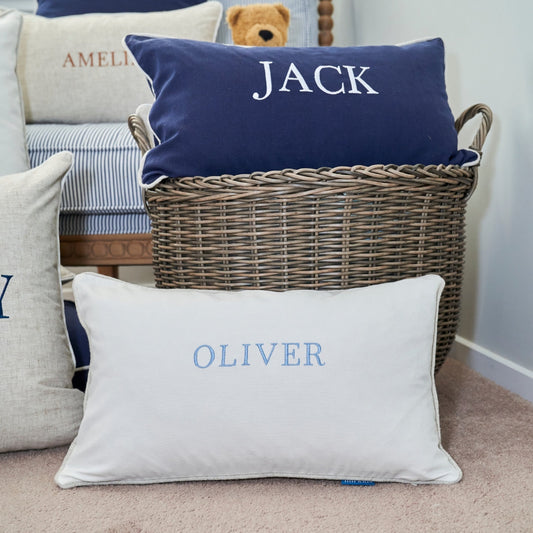 Linen Personalised Name Kids Cushion Cover 30 cm by 50 cm