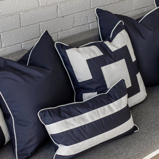 🏷️CLEARANCE SALE | KIRRA Dark Blue and White Panel Plain Outdoor Cushion Cover 30 cm by 50 cm