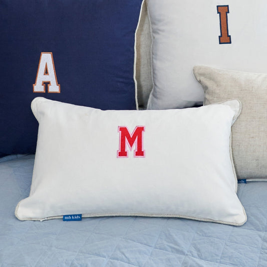 Personalised White Varsity Initial Kids Cushion Cover 30 cm by 50 cm