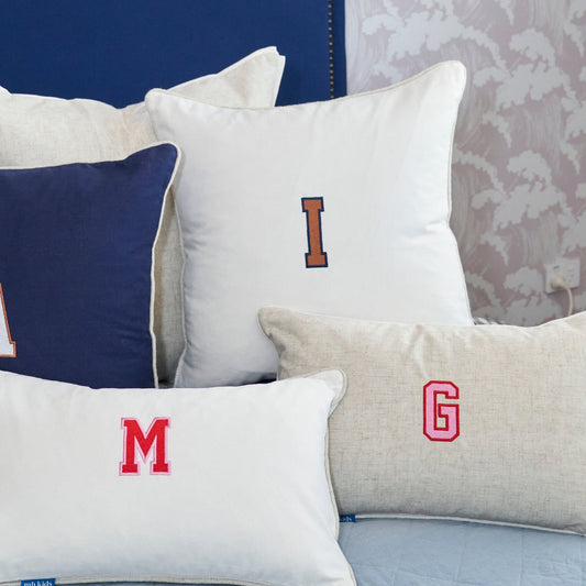 Personalised Linen Varsity Initial Kids Cushion Cover 30 cm by 50 cm