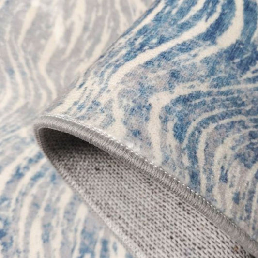 Shikhar Blue Modern Distressed Machine Washable Rug