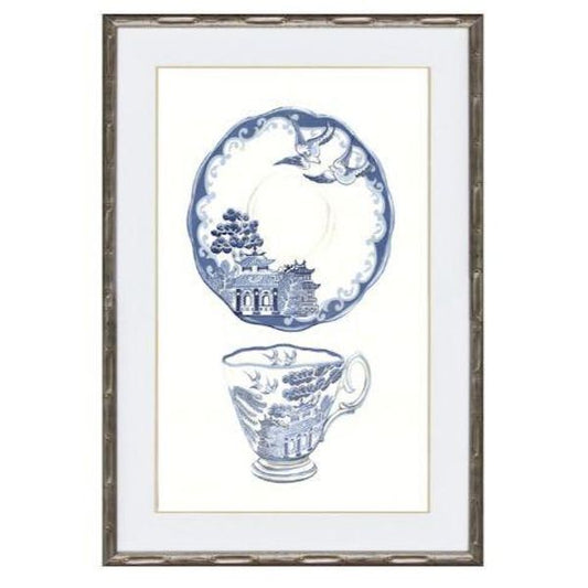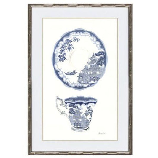 Hamptons Blue and White Tea China Framed Wall Art 54 cm by 74 cm (Design 2)