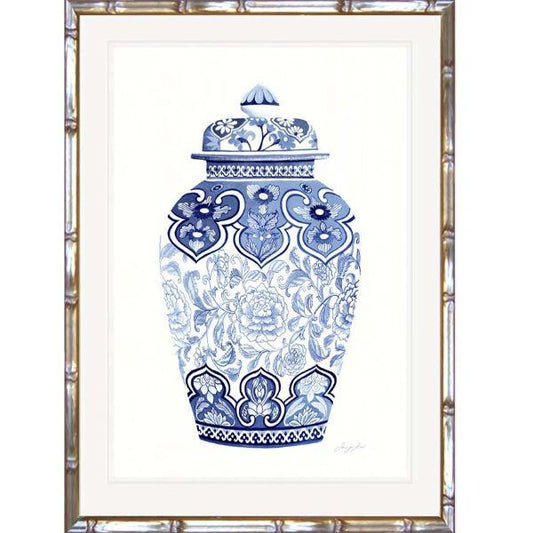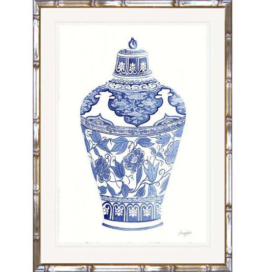 Hamptons Ming Vase (Design 1) Bamboo Style Timber Framed Wall Art 53 cm by 43.5 cm