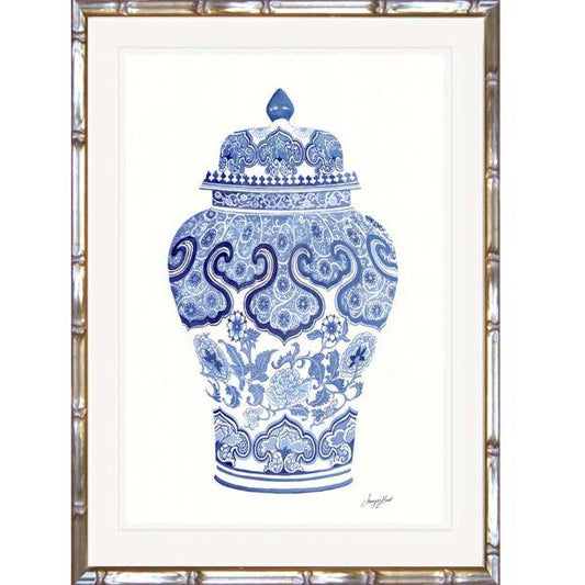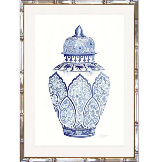 Hamptons Blue and White Ginger Jar Bamboo Framed Wall Art (Design 4) 63.2 cm by 83.2 cm
