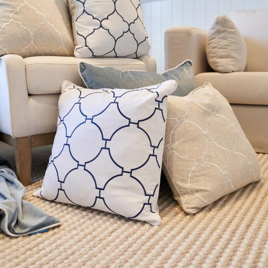 🏷️CLEARANCE SALE | QUINNS White Trellis and Linen Cushion Cover 50 cm by 50 cm
