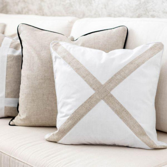 🏷️CLEARANCE SALE | EASTWOOD Silver Linen and White Cross Cushion Cover 50 cm by 50 cm