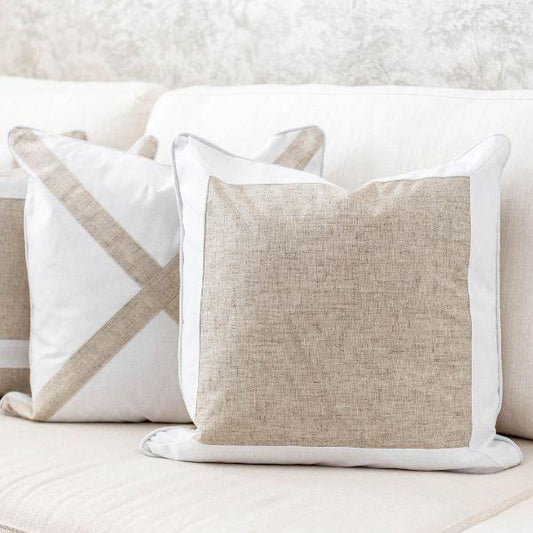 🏷️CLEARANCE SALE | EASTWOOD Silver Linen and White Thick Border Cushion Cover 50 cm by 50 cm