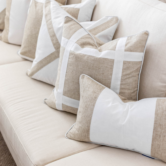 🏷️CLEARANCE SALE | EASTWOOD Silver Linen and White Panel Cushion Cover 50 cm by 50 cm