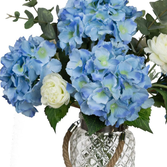 Blue Hydrangea & Peony Mixed Arrangement in Maison Jar 38cm H