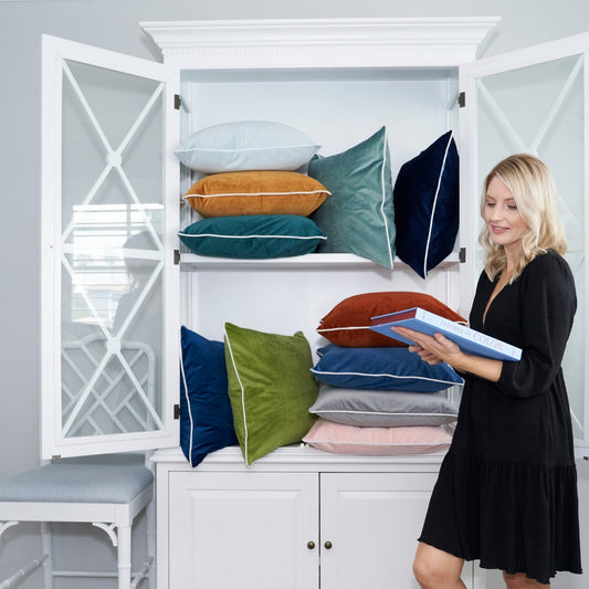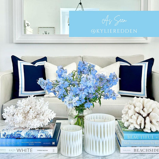 🏷️CLEARANCE SALE | Final Stocks | SARINA French Blue Premium Velvet White Piping Cushion Cover 60 cm by 60 cm