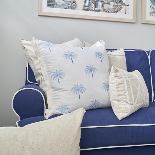 🏷️CLEARANCE SALE | BYRON Light Blue and White Palm Tree Cushion Cover 50 cm by 50 cm