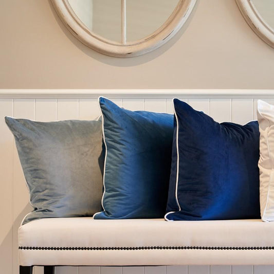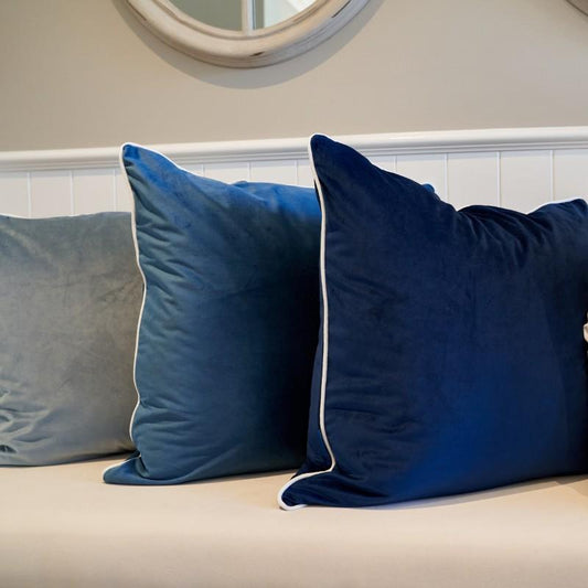 🏷️CLEARANCE SALE | Final Stocks | GRANGE Prussian Blue Premium Velvet White Piping Cushion Cover 50 cm by 50 cm